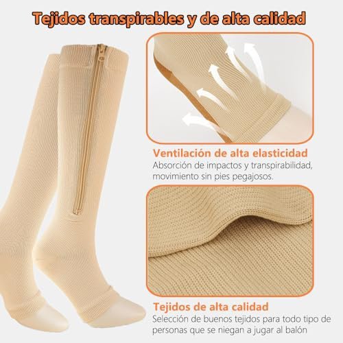 Medias Calcetines de Compresión con Cremallera para Mujeres y Hombres – 1 Par de Compresión Punta Abierta, Pantorilla Alivia Dolor, Calcetines Compresion Largos para Deportivo