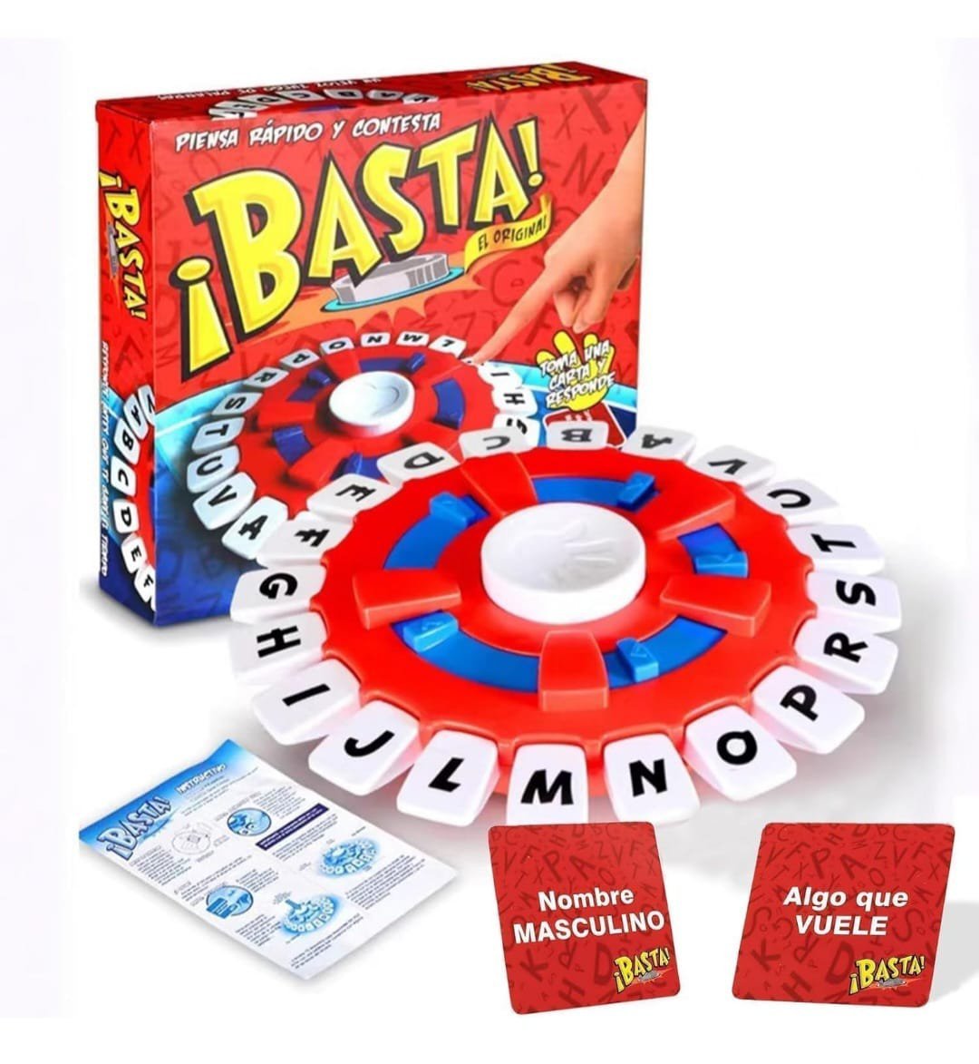 ¡BASTA! es el clásico que nunca falla: rápido, divertido y perfecto para activar cerebros. Toma una carta, presiona el botón, y responde antes que los demás usando la letra que te tocó. ¿Ciudad con “M”? ¿Animal con “T”?