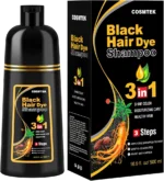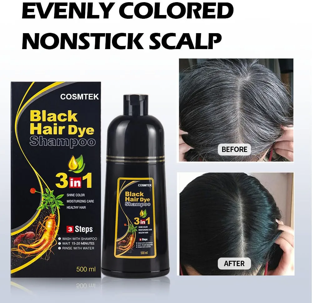 Black Hair Dye Shampoo,Shampoo para Canas 3 en 1, Champú Colorante para Teñir el Cabello Negro, Cobertura de Canas con Ingredientes Herbales, 500ml (Negro)