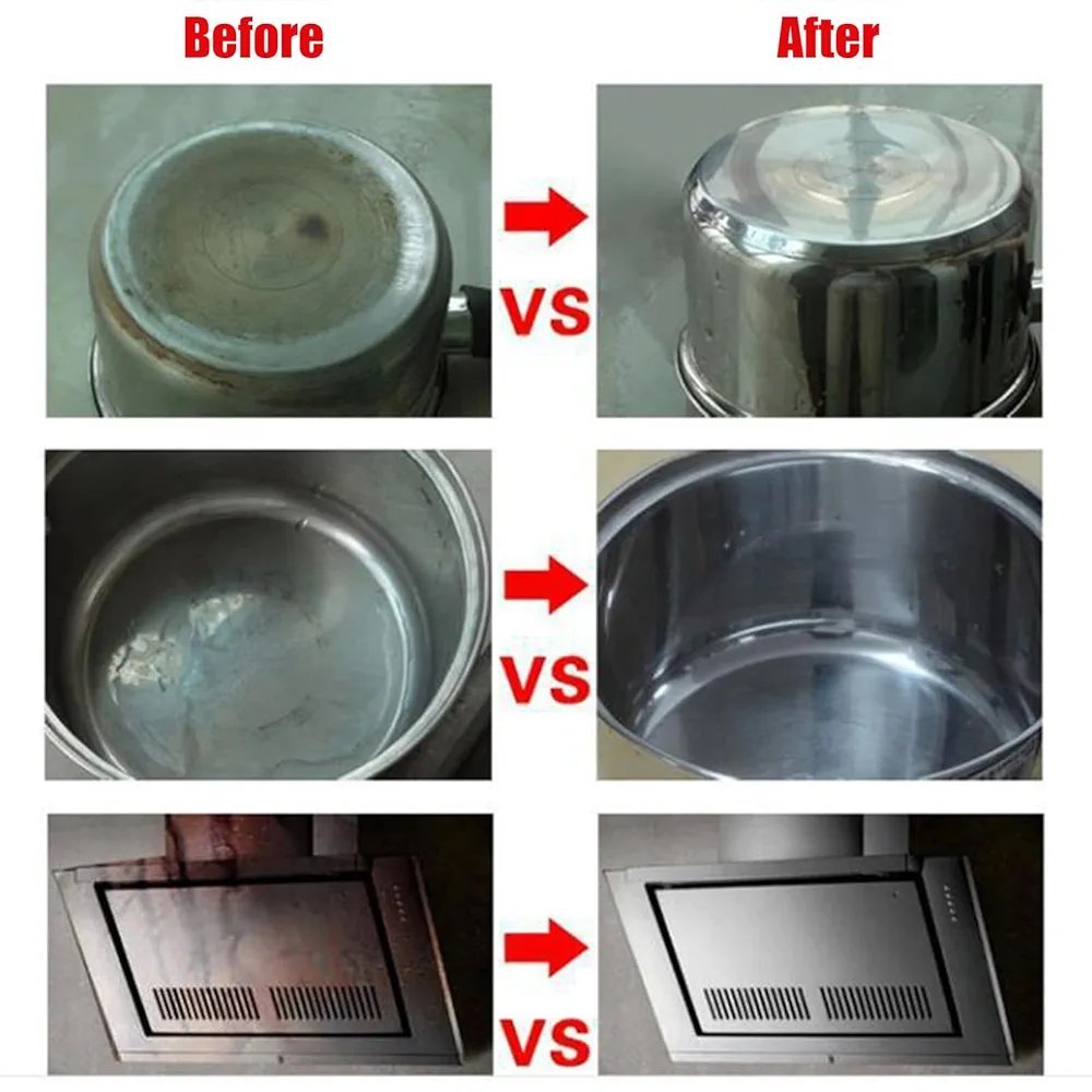 Restauración eficiente y brillante: Restaure superficies de acero inoxidable a un acabado espejo fácilmente con esta pasta de pulido rápido, combinando facilidad de uso y limpieza eficiente para obtener resultados óptimos. Diseñada para quienes valoran la funcionalidad, esta solución ofrece un rendimiento excepcional sin comprometer la calidad ni agregar pasos complicados a su rutina de limpieza