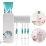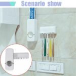 Dispensador de pasta dental + soporte para 5 cepillos de dientes, soporte automático de pared para baño