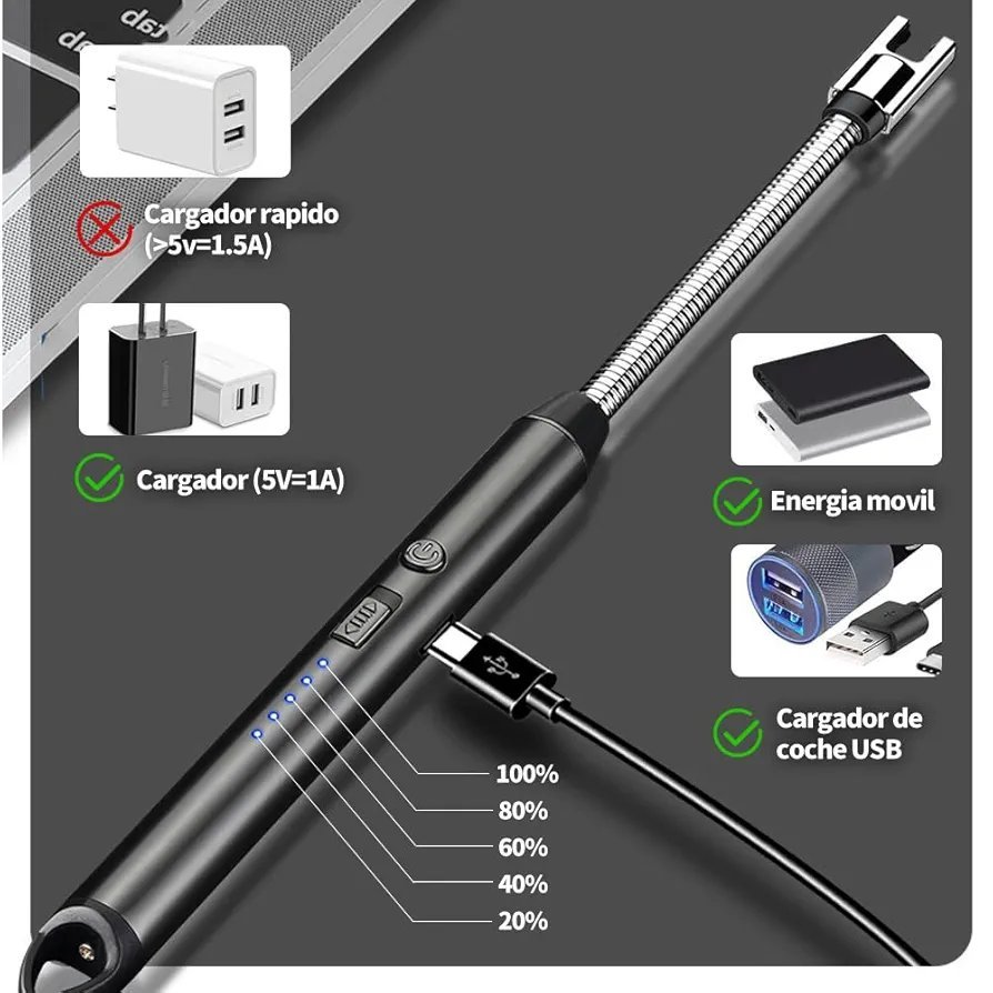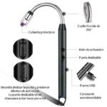 Encendedor Electrónico USB Recargable – Encendedor Arco Electrico Mechero de Flexible Portátil Lighter Antiviento Eléctricos para Encender Velas Gas Barbacoa Cocina Fuegos