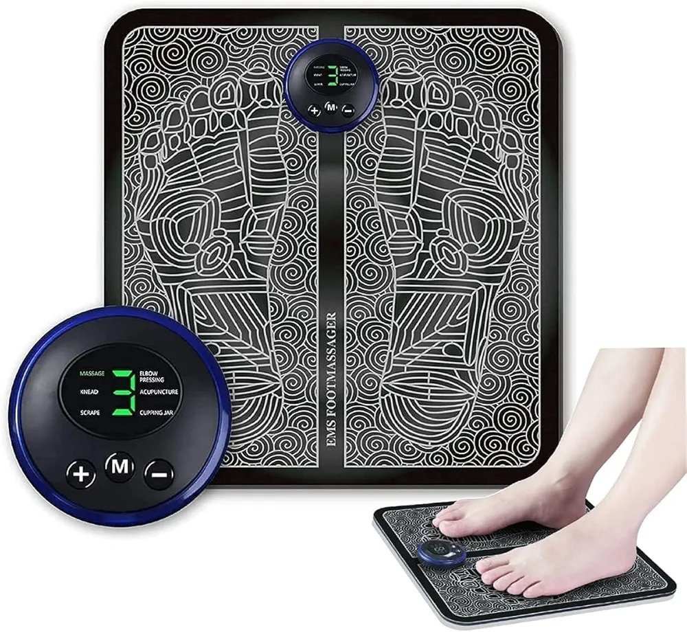 Masajeador de Pies Eléctrico EMS – Estimulador de pie con Pulsos de Baja Frecuencia, Estera de Masaje , Cojín para Estimulación Muscular Eléctrica, Tapete de Fisioterapia Automático para Circulación, Masajeador de Estimulación Eléctrica del Pie