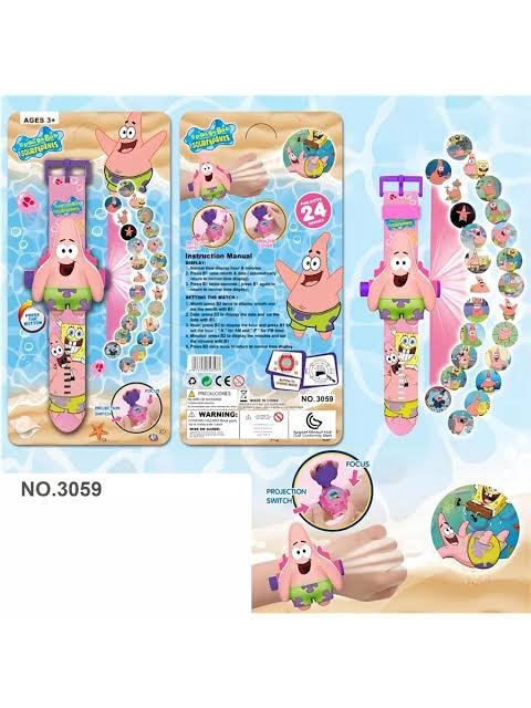 Este reloj es pura diversión submarina. Con Patricio en 3D como carátula y una correa llena de color con Bob Esponja y sus amigos, cada minuto se vuelve una aventura.