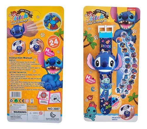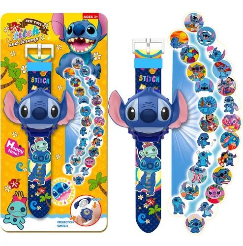 Reloj Stitch: proyector, color tropical y 100% ternura hawaiana.