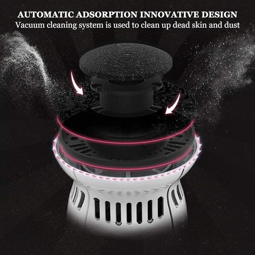 【Disfruta de un salón en casa】 Con una aspiradora incorporada, absorbe la piel muerta a tiempo, disfruta de pies felices con esta limpieza de pies rápida y sencilla en casa. Pie de molienda sin estimulación, diseños de orificios especiales en ambos lados de la cabeza, después del uso, apague la cubierta frontal blanca para limpiar la caspa, muy conveniente de usar
