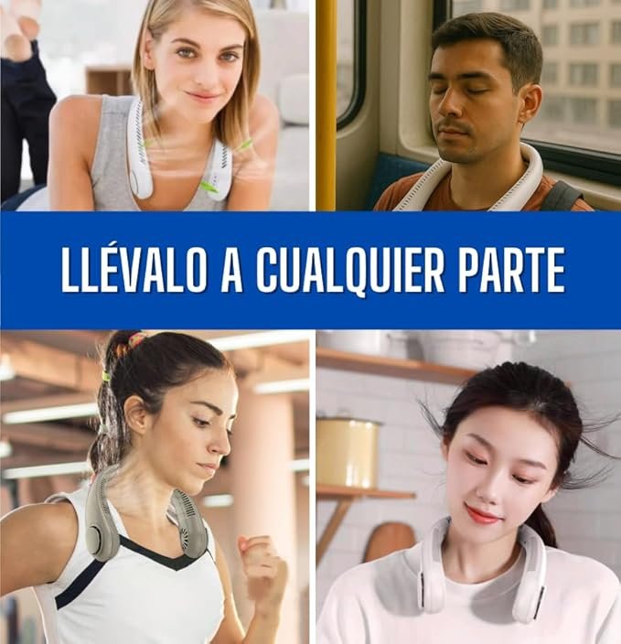 - Mantén fresco tu espacio personal con nuestro ventilador de cuello sin aspas